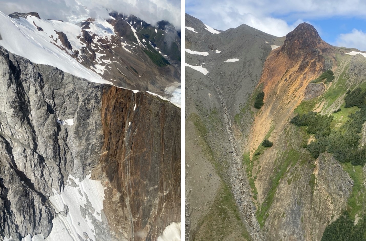 The Big Red and Ted Morris showings are located approximately 1.2 km southeast of Vermillion. Numerous Au-bearing rock chip samples have been collected over this large area (Figure 1), with the most intense mineralization associated with extensive gossanous outcrops of lower Hazelton Group rocks (Figure 2). Rock chip and soil sampling conducted during 2016 in this area indicates the presence of an extensive zone of copper enrichment that is also associated with Au enrichment in the northwestern part of the showing (Figures 3 and 4). Copper mineralization is vein-hosted, and characterized by chalcopyrite, chalcocite, and bornite. This mineralogy is consistent with Cu-Au porphyry-type mineralization, and may represent a southwestern extension of the Treaty Creek-KSM trend of porphyry deposits. Host rocks at the nearby Vermillion and Red Lightning showings are lower Hazelton Group andesite and associated sedimentary rocks, and of the proper age to host porphyry mineralization.